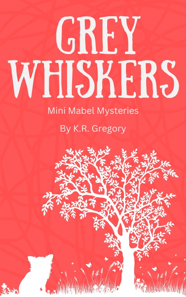 A paperback copy of the Grey Whiskers novel, part of the Mini Mabel Mysteries series by KR Gregory.
